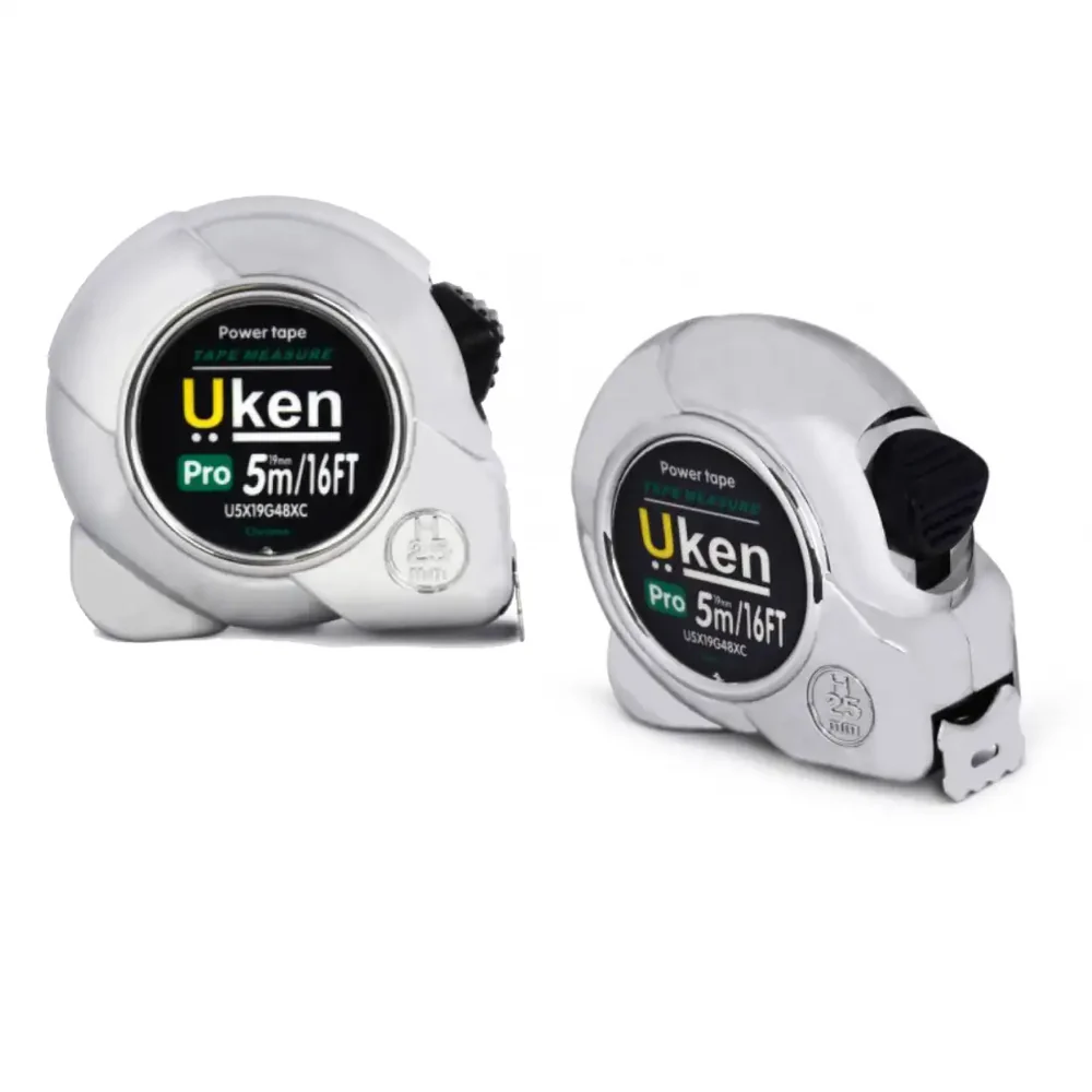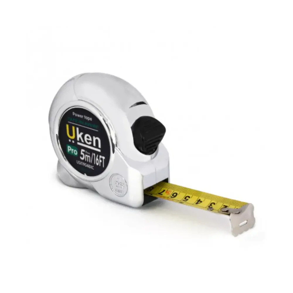 Ergonomic and Compact Design fits beautifully in the hand and offering more easy handling. Get accurate measurements every time with the Uken 5M measuring tape. Featuring a durable chrome color design and shock-proof construction, this tape measure can withstand tough conditions. The thicker blade and clear graduation markings ensure precise measurements, while the excellent lock system keeps the tape securely in place.